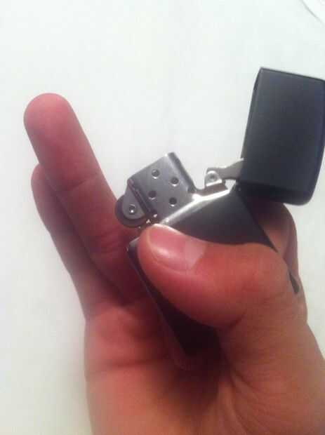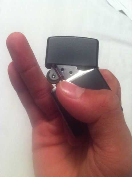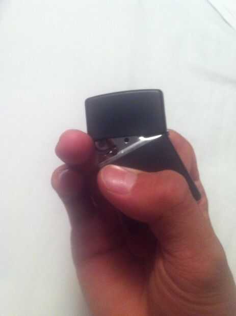 Deslice su dedo del anillo contra el lado de lo zippo... Con suficiente presión y velocidad de la tapa se levantará a