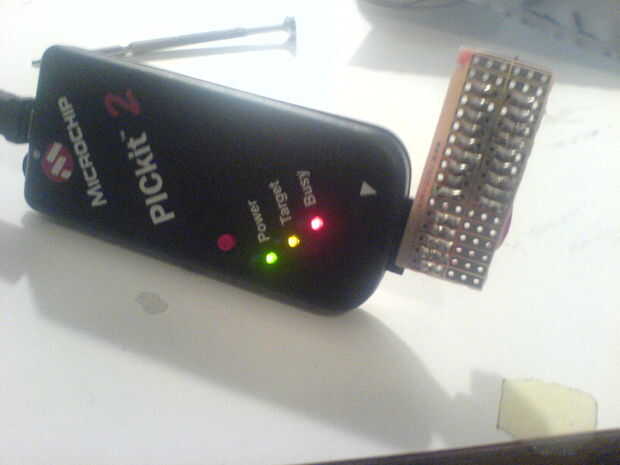 Inserte su PIC16F676 conectar el programador al jefe del pin y hacer algunos simples test como prueba de la conexión y lectura de la memoria del dispositivo.