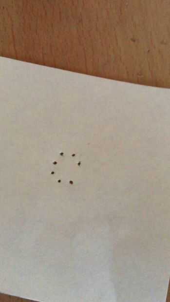 Primero, tome el papel con los puntos de alfiler y con un clavo, perfore cada punto en el papel. Usted debe terminar con un papel con agujeros que se adaptan perfectamente a las clavijas en el tubo. A continuación, inserte el tubo en los agujeros para asegurarse de que cabe.