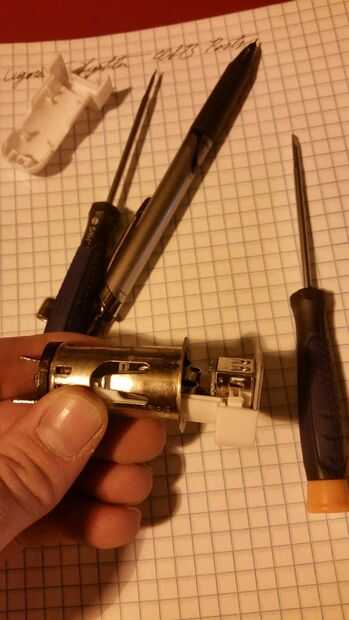 Recuerde: El resorte en el extremo es positivo mientras que la pieza curvada de metal que toque las paredes del encaje es negativa.