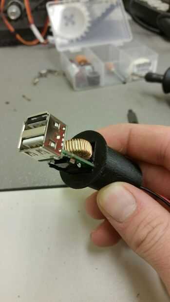¿Recuerdas cómo te dije que pensé en casi todo? Imprimí la manga, y que ajusta como un sueño! Excepto el imán toroidal. Que tenía que hacer Dremeling un poco aquí y allá pero se adapta y se ve muy bien, piensan que mi coche vino de esta manera! Puesto que todos los enchufes de mechero son del mismo tamaño, que esto debería funcionar para todos los coches, la única variable siendo el circuito.