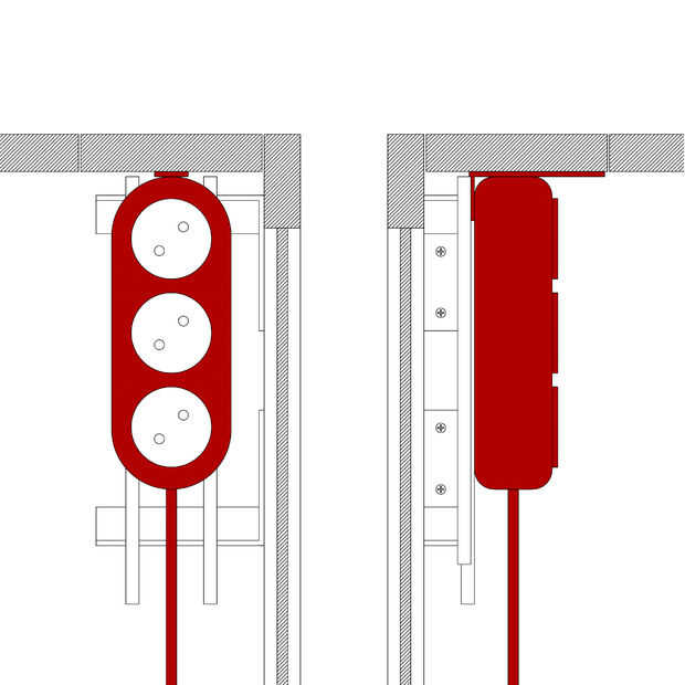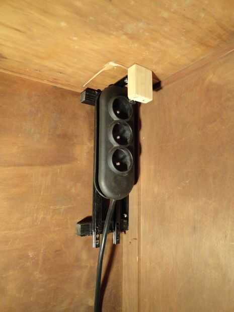 Puede conectar las tomas a los deslizadores con pegamento o con tornillos. IMPORTANTE cuando utilice tornillos, asegúrese de que los tornillos no tocar ni dañar el eléctrico cableado dentro de la caja!! También deberás colocar un gancho encima de la caja. Este gancho une la tapa a la caja y ya está hecho el gancho de metal, también se utiliza para el sistema de cierre magnético.
