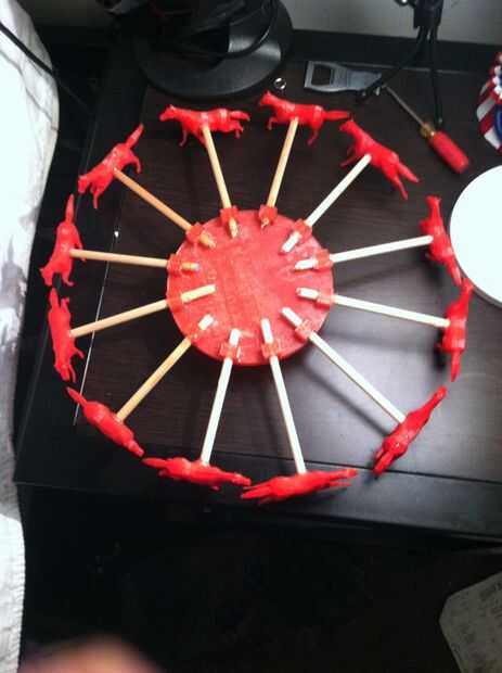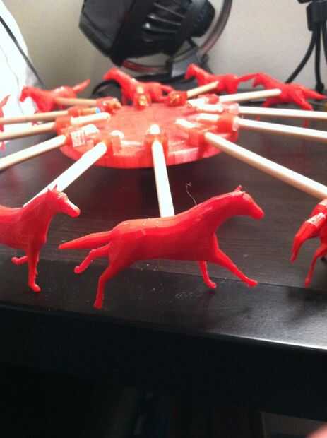 Los caballos fueron montados con un montón de epoxy. Se imprimieron en mitades para utilizar menos material de la impresión. Si desea combinar estas mitades e imprimirlas con las ayudas más puede hacer en Maya. Pero si no, mejor para esto es un pegamento que se seca completamente. Los tacos luego vinieron siguiente. Más agujeros perforados en el interior de los caballos y me ajustaron las clavijas a ellos. Una vez que los secos, los tacos luego se ajustaron a los orificios en la pieza central que impulsa el motor.