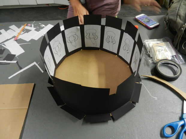 la historia es un zoetrope portátil que se esconde en un sombrero. Qué es un zoetrope que pides, pues es una máquina antigua timey que permitía ver animaciones cortas ilustradas. Este instructable le explicará cómo construir su sombrero y funcionamie