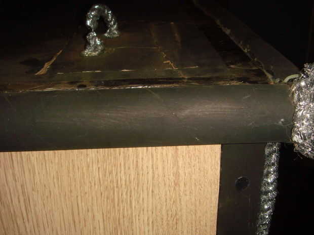 Pegamento negro pintado envoltura de tubos de papel en el borde superior del traje, los extremos de los dos tendrá que cortar a una longitud más corta, los dos que se destinan para el tamaño más corto. Las esquinas mirará divertido pero pueden equipar.