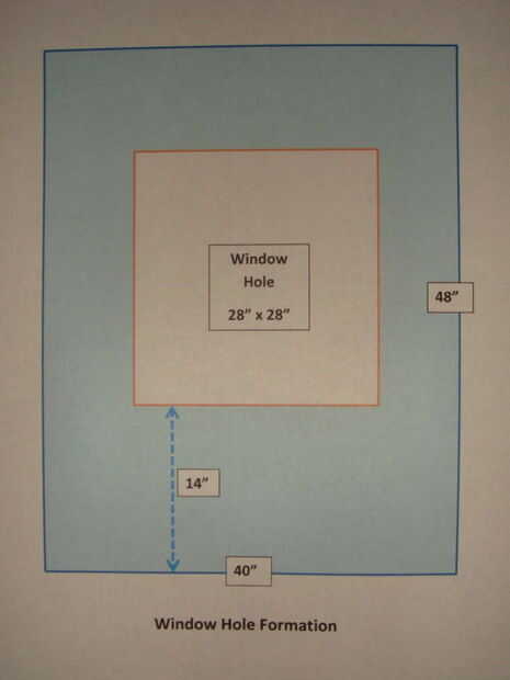 Mediante la reducción de la ventana ahora permitirá más luz en el espacio de trabajo. La ventana mide 28 "x 28" y será cortada de uno de los lados ancho. La ventana se corta justo encima de donde el apoyo de la Junta se reclina dentro del traje, así que poco más de 14 pulgadas para arriba. El centro de la caja debe ser evidente ya que es donde se unen las 2 cajas, usted puede medir 14" desde el centro de cada lado. La altura de la ventana también es 28", le sugiero medir y dibujar donde usted cortará antes de romper el cuchillo. Cortar la ventana con un cuchillo afilado de cuchillo o caja. Trate de hacer lo más suave posible hará más fácil decorar los bordes de corte.