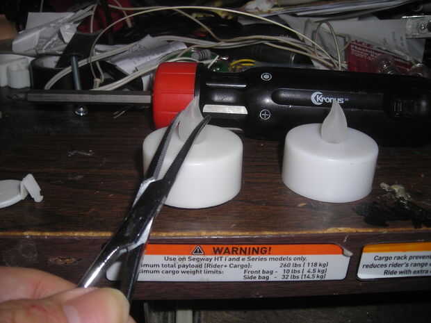 Desechar las partes de la vela, el interruptor de plástico inferior, etc. todos que estamos guardando es el LED, la batería