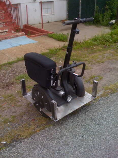 Quería dedicar el segway sólo a zoltar, por lo que diseñó todo para poder ser desmontados fácilmente. Tenga en cuenta también las barras laterales soldadas que sostendría los puntales.