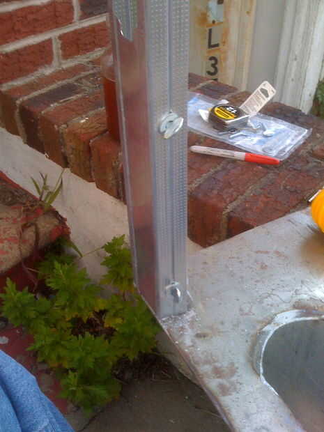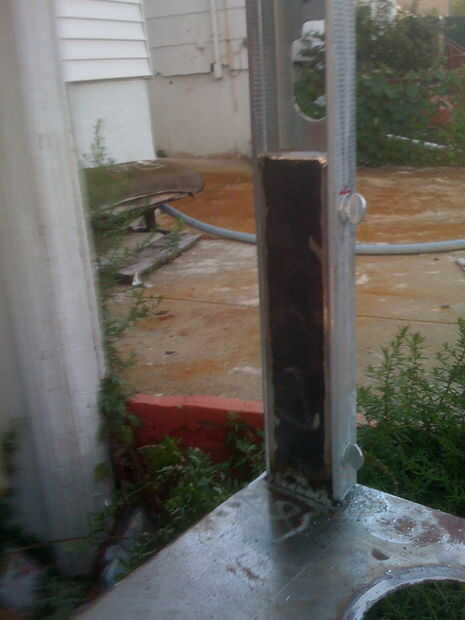 Uso de materiales de construcción estándar (puntales de aluminio, taladro y llave, tuercas de mariposa y 1/4 - 20 tornillos), montado las vigas en la base. Perforados y roscados a todo porque no sabía la