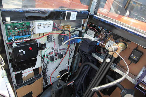 proyecto DIY, construido sobre un segway, con 1000 watts de amplificación, micrófonos inalámbricos, monitor audio bluetooth, dos vías de comunicación con un spotter, 7 altavoces, Micro controlado por luz.