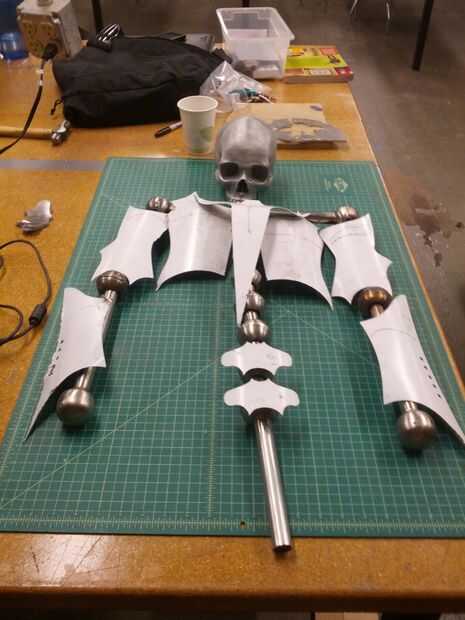 Ropa fue unida al esqueleto permanentemente mediante el uso de pedazos minúsculos de las soldaduras de fusión y barra pin.