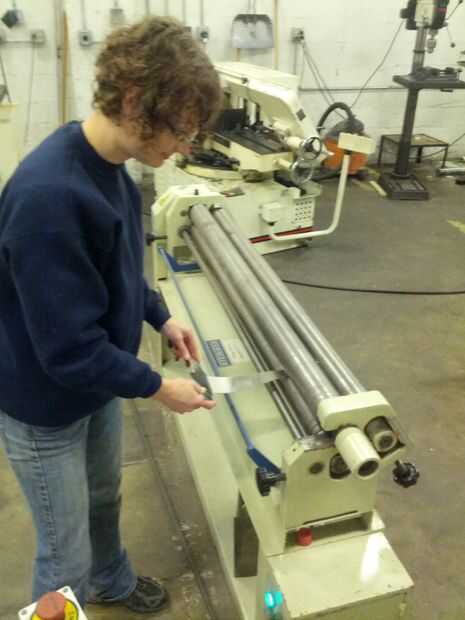 Por lo tanto, los patrones para sus vestidos fueron cortados con un cortador de chorro de agua. Corte plasma o láser habría dejado calor marca alrededor de la periferia de la pieza... algo que realmente quería evitar. Después de corte por chorro de agua, las piezas fueron dobladas en un rodillo o con la mano y luego poner en el lugar en el modelo.