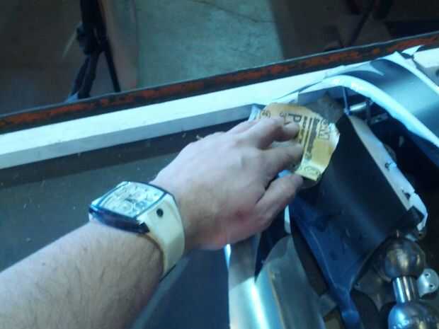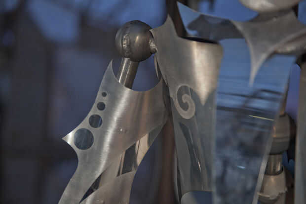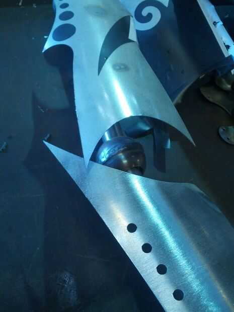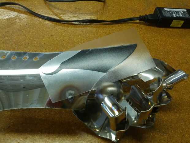 Para solucionar este problema, mano máscaras de vinilo algunos cepillado de acero inoxidable nuevo a un final de #4, sino que sirva para mantener ciertas áreas en un brillo #8. Esto no sólo añade definición a la ropa, pero a detalles de la pieza más simple de hacer.