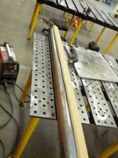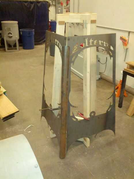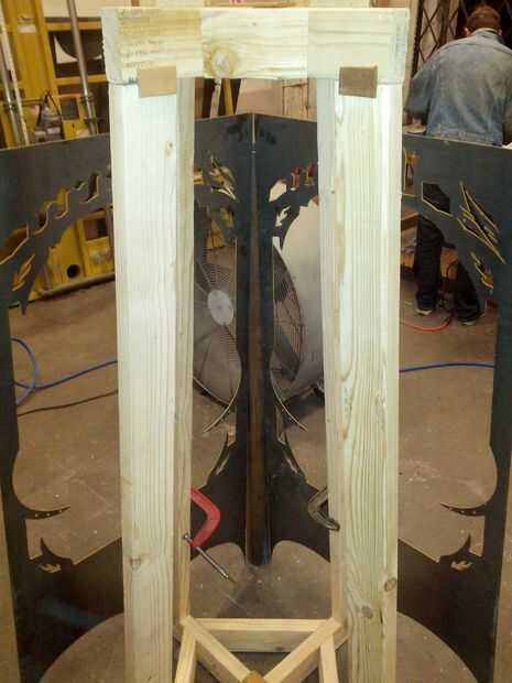 He probado algunos métodos diferentes de intentar conseguir cuñas incluso fuera de él, pero lo mejor que pude encontrar fue establecer el material con una fina pieza de madera para actuar como un guía helicoidal, luego usando un cortador de plasma para cortar la forma que necesitaba. Tengo el perfil correcto de la cuña de sujeción de las placas de la caja de acero para la plantilla había hecha en el paso anterior, luego cortar los tubos de ajuste.