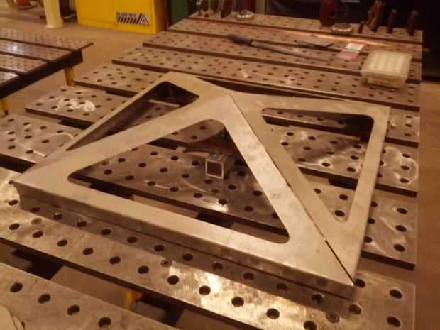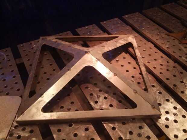 Cortarse una sección de la tubería que es la altura total de la pirámide que queremos y estar las piezas de metal en esa sección de la tubería. Esto permitirá alinear cada una de las piezas sin un boquete y rellenar con soldadura.