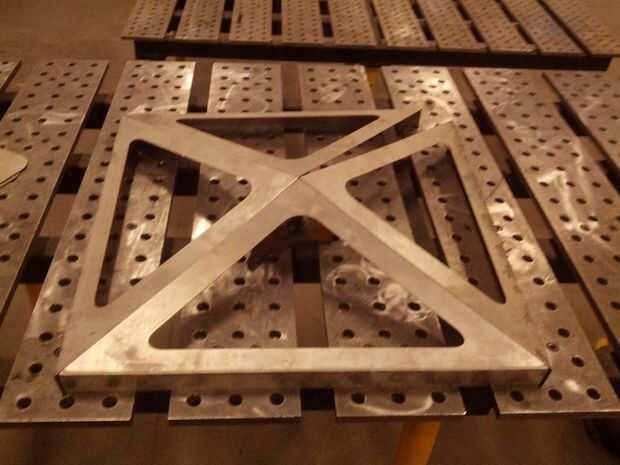 Plasma del CNC o por chorro de agua corte estos si tienen acceso a una... o trazar el patrón en metal y corte a mano. Doblar los bordes que deben doblar (un doblez freno le ayudará enormemente!) Tenga en cuenta que el ángulo no es muy importante aquí porque es probable que un número muy extraño.
