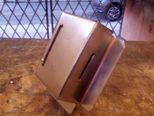 Recomiendo hacer esta caja fuera algo fácilmente bendable (yo usé de latón). Sobre todo, esto es porque cuando vas a instalar en la pieza, si hay bordes muy duros que no quieren moverse (como 16ga. acero inoxidable), es poco probable que usted podrá conseguir un buen ajuste apretado con lo circundante. ¿Cómo sé todo esto? Porque el primer cuadro traté de hacer fue 16ga inoxidable y no funcionó hacia fuera tan bien :)