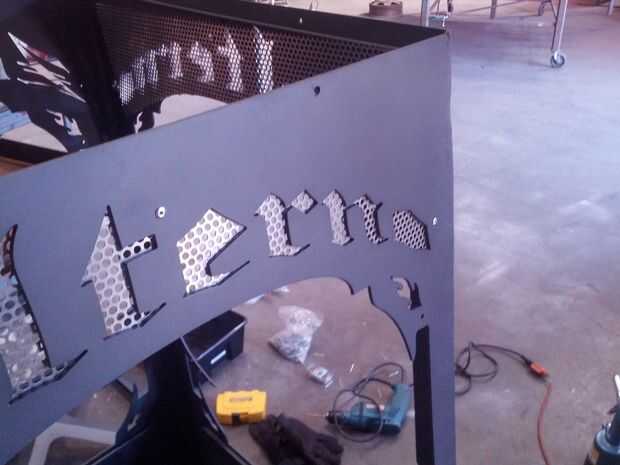 Además, agregué acero inoxidable perforado detrás de las letras y Unidas con remaches para más contraste... seeeeexy!