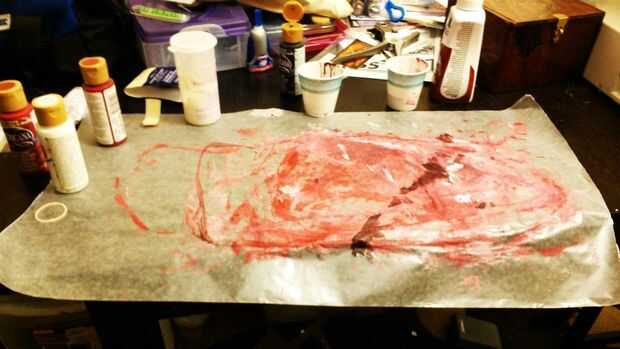 Tomar sus pinturas acrílicas y delgadas abajo con agua y empieza a untar en cada pieza hasta que obtengas un look que estés feliz con. Me ha gustado hacer mis bordes más oscuros y dejar alojarte más claro hacia el centro de cada pieza para realmente vender la idea de que estos oprimidos y maltratados pedazos de carne flayed.
