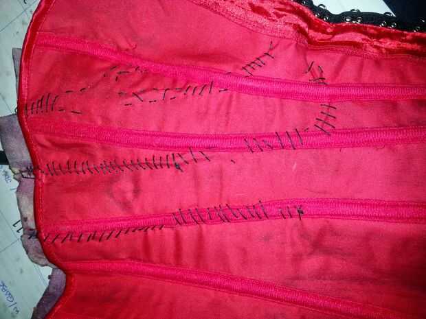 Para dar a su fuerza de corsé de la carne, coser tanto a través de sus piezas de carne y el corsé real sí mismo.