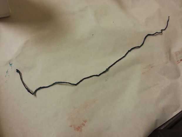 Una vez seco el látex, frote suavemente los dedos por el borde de la hoja para comenzar a crear un "rollo". Enrollar el látex en gusanos largos. No te preocupes, latex ama a pegarse a sí mismo por lo que se trata de una tarea sencilla! Rollo de sus venas como grueso o tan delgado como quieras y luego retire la bandeja para hornear galletas.