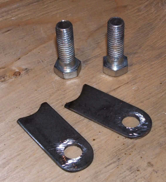 Comencé cortando unas pocas pulgadas de 1,5 pulgadas barra plana como se muestra en la foto 21. Atornillados a las tuercas que están soldadas en tubo de la horquilla, estas placas forman un tapón entre el cuello de cisne y las tapas de horquilla como se verá en los siguientes pasos.