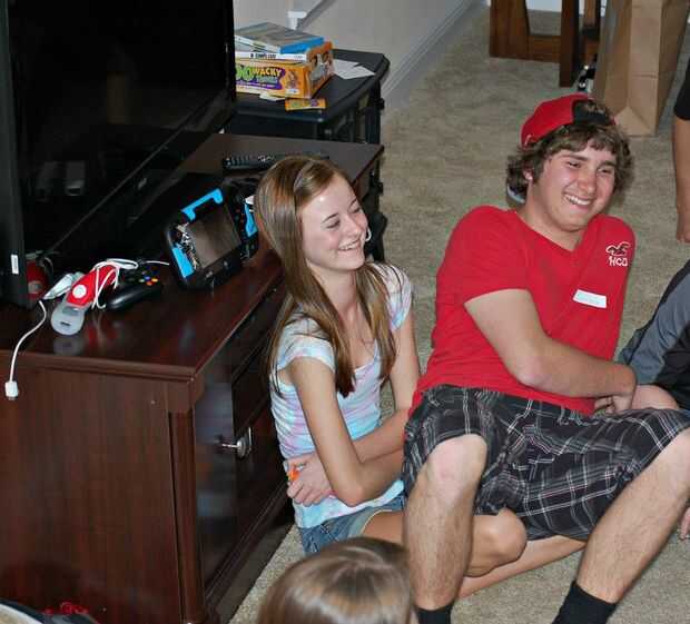 eran de juegos y tenía sobre todo de los niños en la fiesta así que lo hicimos. Dos opositores sentarse sobre sus rodillas frente a unos de otros y sujete las manos. 3 tratan de hacer otro, ya sea hacia atrás o al lado.