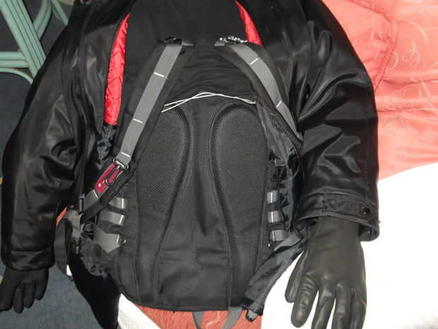 Coser los brazosNo se olvide de dejar espacio suficiente entre el torso de agallas y el conducto de cinta doble para usted se deslice a través, de lo contrario no podrás ponerte el traje D: