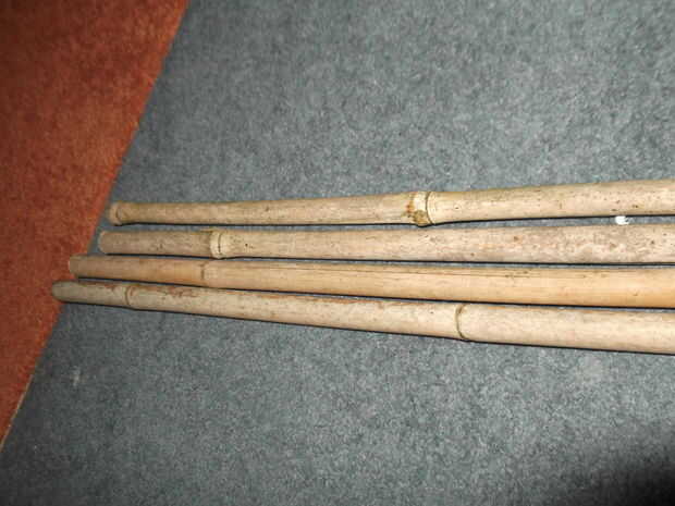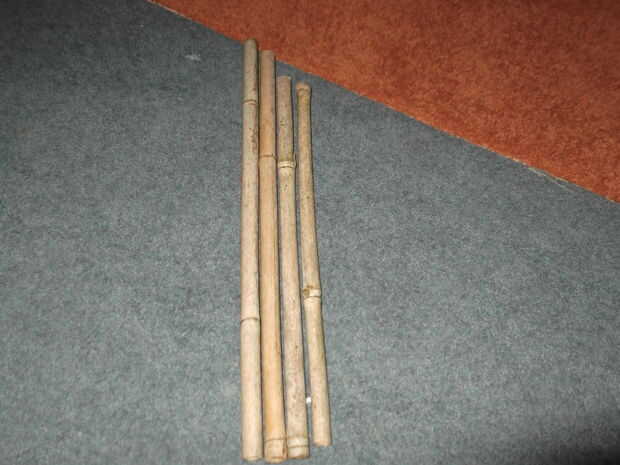De una forma más realista en los brazos te sugiero cortar las secciones de cañas de bambú, que es aproximadamente la longitud de su antebrazo y dos que son la longitud de su brazo (me refiero a la distancia entre el hombro y el codo). Puede insertar estos en sus respectivas posiciones y relleno.
