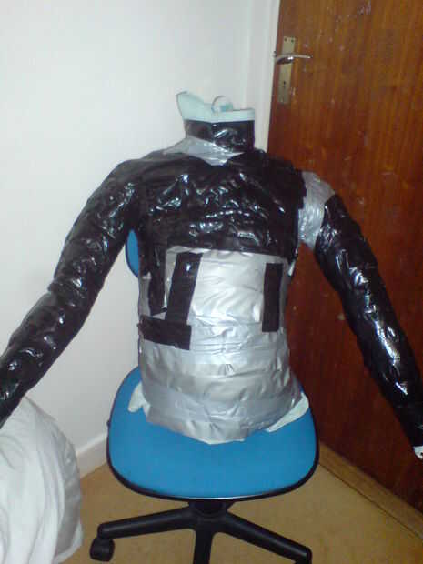 La cinta debe mantenerlo en forma para que usted puede poner como mucho relleno que quieras y sólo lo dará más forma. En el área del codo no sobre cosas que quieras una cierta flexibilidad.