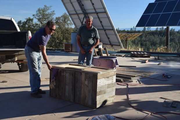 Hicimos la caja de un par de palets viejos y planchas de madera escarpa – como con todos los adornos aquí, el objetivo era una cosa mira antibarro. Nos de tamaño para que sea suficientemente grande para contener a un zombie. Éste requiere solamente sus herramientas hogar típico: Sierra de mesa (podríamos haber simplemente utilizado la sierra circular), controladores de taladro y herramientas de mano.