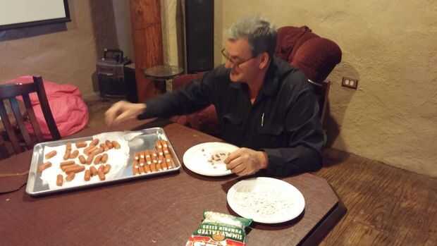 Empezamos con la caminadora desechada en el garaje. El motor y la cubierta todavía trabajan, así nosotros podríamos utilizar que como el transportador de salida que sirve bandeja tras bandeja de aperitivos – verde, por supuesto: salsa verde en chips de espinacas; aguacates, guacamole, etc.. Yum!