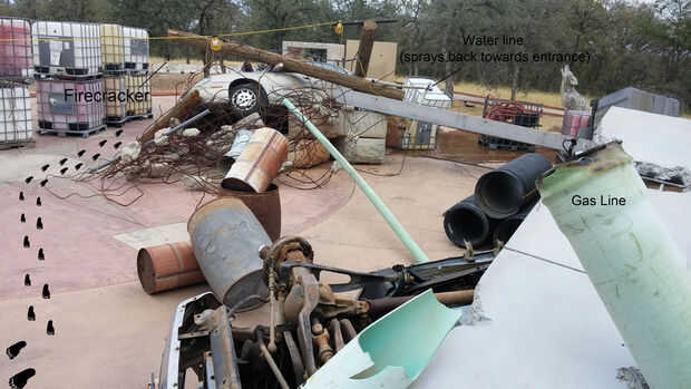 • Un montón de artículos grandes para ajustar el tono apocalíptico: coches tirados, antiguo graffiti k-rieles hasta, hormigón y barras de refuerzo de enredos, barriles oxidados y tubos, etc..