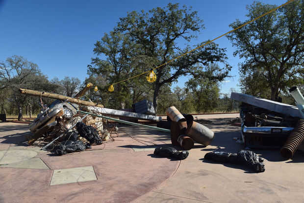 Colocado el altavoz, controlador y regletas debajo de la camioneta volcada para mantener fuera el tiempo y había montado el CA PicoBoo y cableado para chatarra OSB para alivio de tensión y pulcritud.