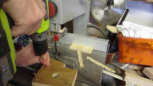 Para conectar realmente las piezas delanteras y traseros utilicé tornillos de madera común. En el espíritu del proyecto no hay perforación previa, por lo que se corre el riesgo de partir la madera. En mi caso, utilicé de pinotea que es laminada, y menos probabilidades de agrietarse como madera sólida, sino que, también, depende de la especie y el estado de su material.