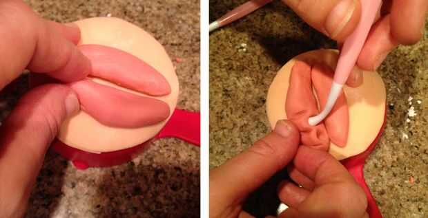 serpientes pequeñas del "fondant de chicle", plano de un poco, usando una "herramienta de Dresden", las cavidades de los dientes y crean hacen abolladuras entre cada diente.