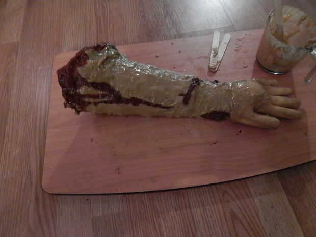 Yo soy un gran fan de hágalo usted mismo (DIY) Halloween props. En muchas de las películas de zombies, un brazo zombie generalmente obtiene corte o arrancado. Soy un gran fan del cine zombie y creo que sería cool para recrear uno de los accesorios de efectos especiales que utilizan. Así que este año he decidido hacer un falso brazo cercenado del codo hacia abajo. Por lo tanto, usando la inspiración de muchos de los clásicos como "La noche de los muertos vivientes", poner juntos un diseño que va a hacer su Halloween realmente terrorífico. Ahora, yo no soy alguien que hace efectos especiales para ganarse la vida, así que tuve que pensar en una manera barata e interesante para hacer un brazo cercenado. Decidía sobre dos tubos de PVC como los dos huesos de la base, con soportes de cartón y una malla de alambre para mantener la carne cubierta de glicerina y el molde interior de grandes cosas. En este instructable te voy a mostrar cómo poner juntos un apoyo de la mano cortada de zombie fácil y barato. Espero que esto encontrarás muy útil y voy a actualizar esto cuando sea necesario.