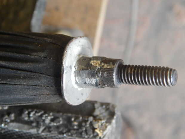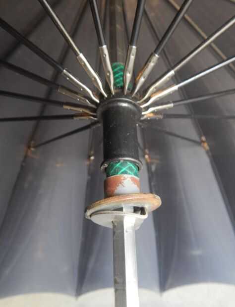 Como la mayoría de paraguas mina tenía un árbol débil y endeble. Lo primero que necesitaba hacer era sustituir esto con algo más substancial. Me ha pasado tener un sumergible antiguo llevaba bomba en mi cobertizo, así que decidí probar utilizando el eje de acero inoxidable de él para el paraguas.