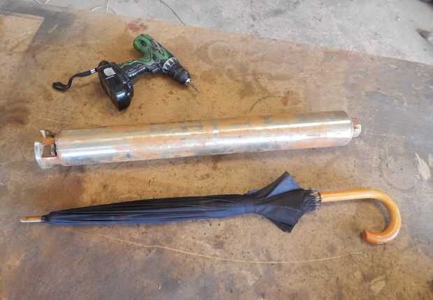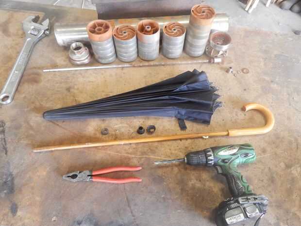 Me quitan la manija y el eje de la sombrilla. Fue sólo un par de clavos muy pequeños sosteniendo juntos.