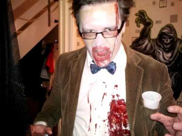 conseguir el corazón de plástico, conseguimos nuestra de una tienda de libra y coser un trozo de tela roja a uno de los extremos después coser el otro extremo a la parte del pecho de la camisa blanca, una vez que su lugar en y tienes la camisa en drible sobre parte de la sangre falsa para que se vea como tu corazón está colgando hacia fuera , luego poner la chaqueta en