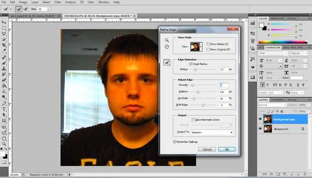 Utilizar la herramienta de selección rápida para Seleccione back ground y elimínelo. Para obtener un mejor corte uso la herramienta de borde refine en el menú Seleccionar. (imagen 1)