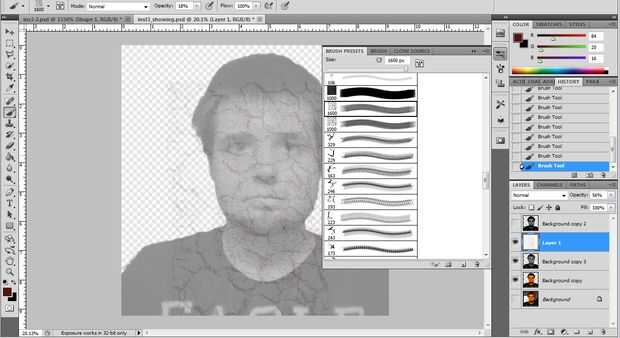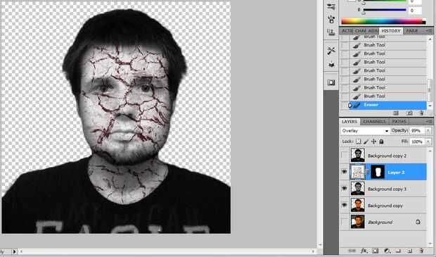 Utilizar los cepillos agrietados con un color oscuro rojo forground a hacer grietas y líneas en blanco de capa. (imagen 2)