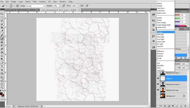 Establecer el modo de fusión superposición.