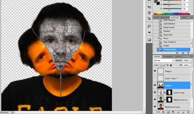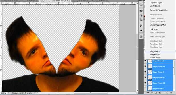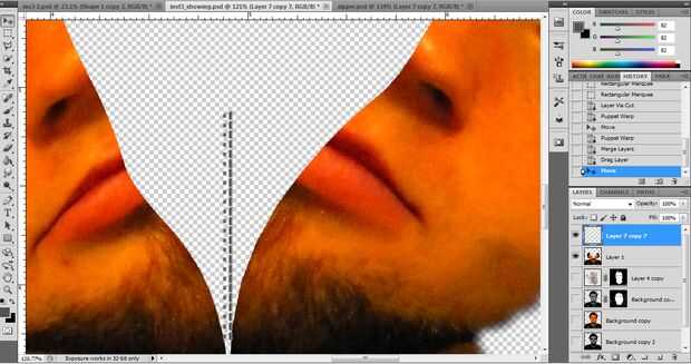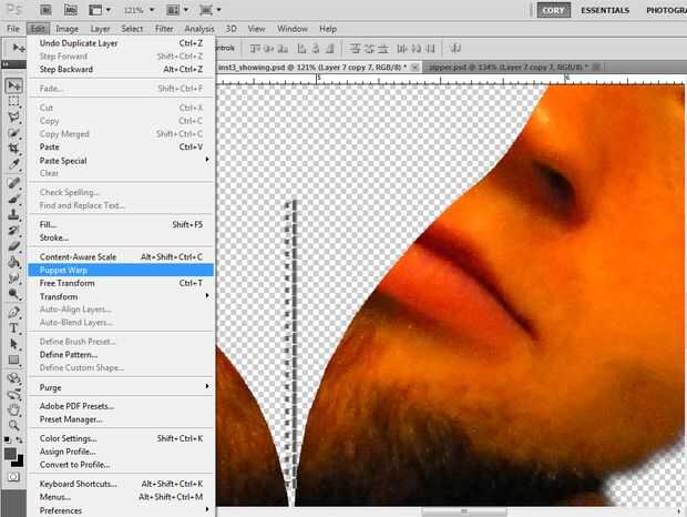 Usar deformación de posición libre para hacer la cremallera que siguen las curvas de la cara. Edición > deformación de posición libre . (imagen 4)