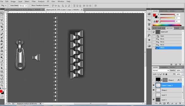 Para obtener la media cremallera en el otro archivo de Photoshop ver imagen 2.