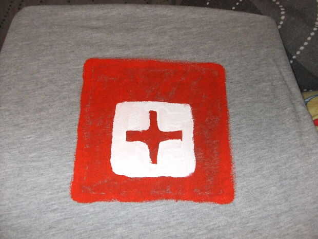 3. pinta un rectángulo rojo en la camiseta. Seque completamente