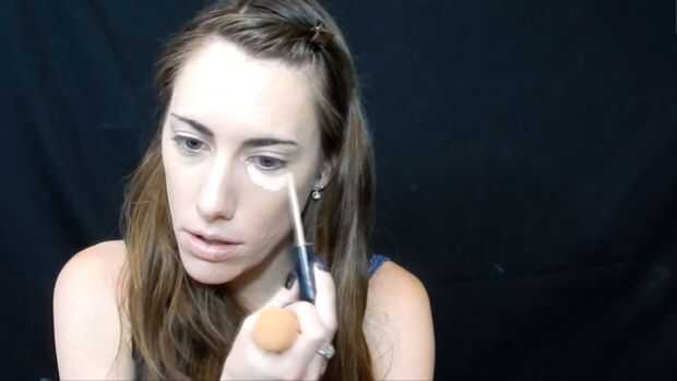Tutorial de maquillaje Zombie HalloweenPaso 1: Cara pintura.Vamos a empezar!1. en primer lugar utilizo pintura de cara blanca y suavemente aplicarlo a mi cara.2. recuerde lo descolórese hacia fuera.Paso 2: Ojos y cejas.3. usar un lápiz de ojos negro