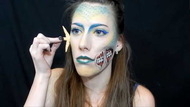 Rompí una estrella de mar por la mitad, luego usé látex líquido para pegar en mi cara.