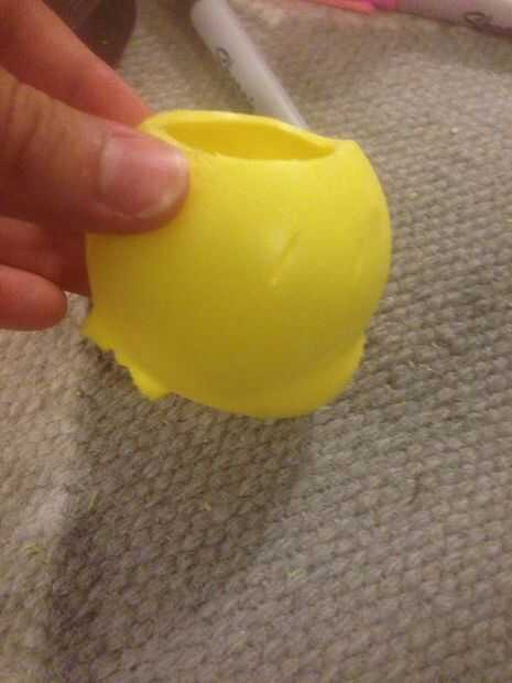 Usted quiere cortar un montón de cortes y laceraciones en el plástico con un cuchillo X-Acto primero desea cortar las áreas que se desean mostrar el interior como si quieres es cerebro mostrar o tener su oreja rasgado y luego a desordenarlo con una sierra y clase de hace un montón de pequeños agujeros y raspaduras en él para que se vea muerto