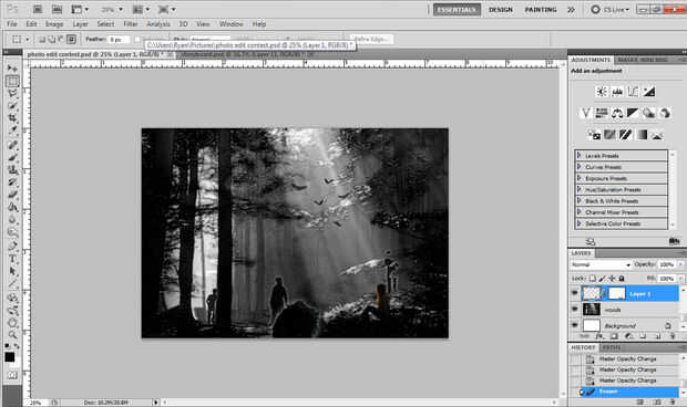 He seleccionado los murciélagos con la herramienta Selección rápida y había pintado negro.  Entonces arregló en la escena de una manera que sentí que era conveniente.